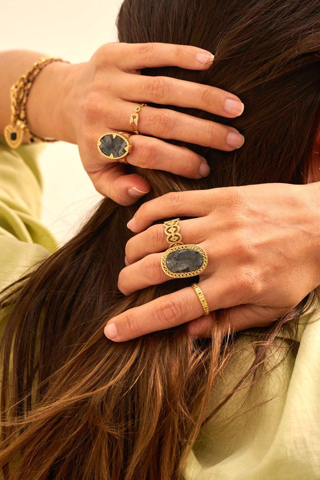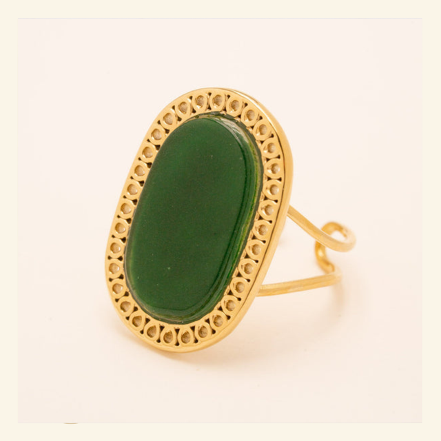 Bague en Agate verte ovale posée sur un anneau ajourée.