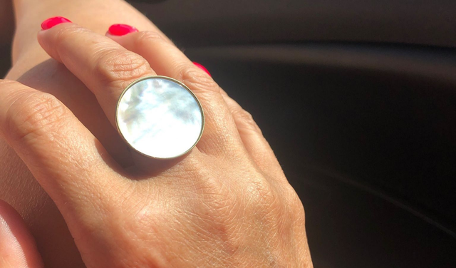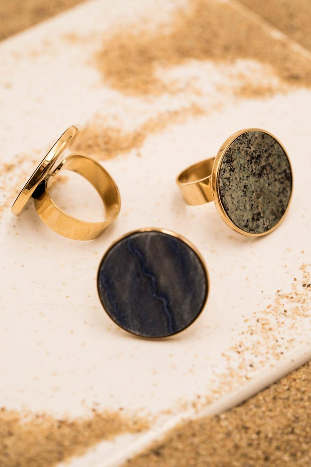 Bague ronde dorée à l'Or fin sertie d'une Pierre Naturelle Blue Sand