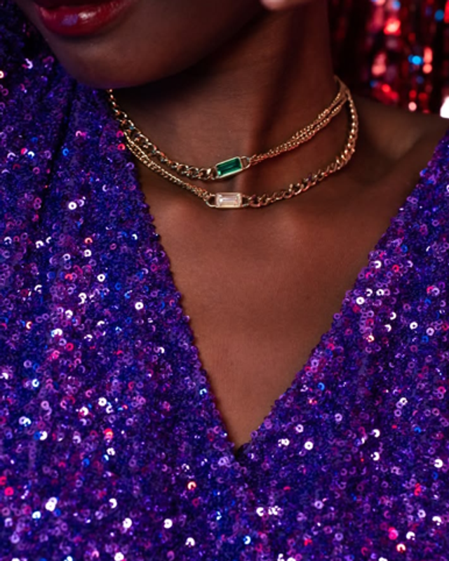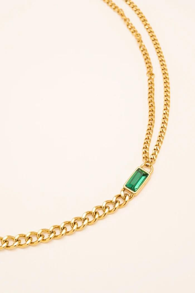Collier doré pierre rectangulaire Emeraude