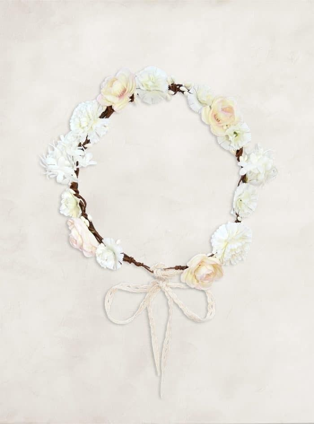 À la recherche d’une couronne pour illuminer le grand jour ? La couronne Paula enveloppe la mariée d’une douceur délicatement poudrée. Composée de fleurs rosées et d’œillets ivoire, elle mêle fraîcheur, romantisme et esprit bohème. Ses nuances subtiles apportent une touche lumineuse et poétique à la coiffure, idéale pour parfaire une allure naturelle, raffinée et profondément élégante.