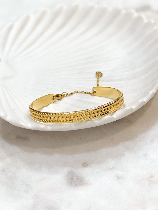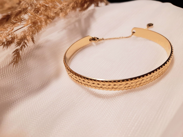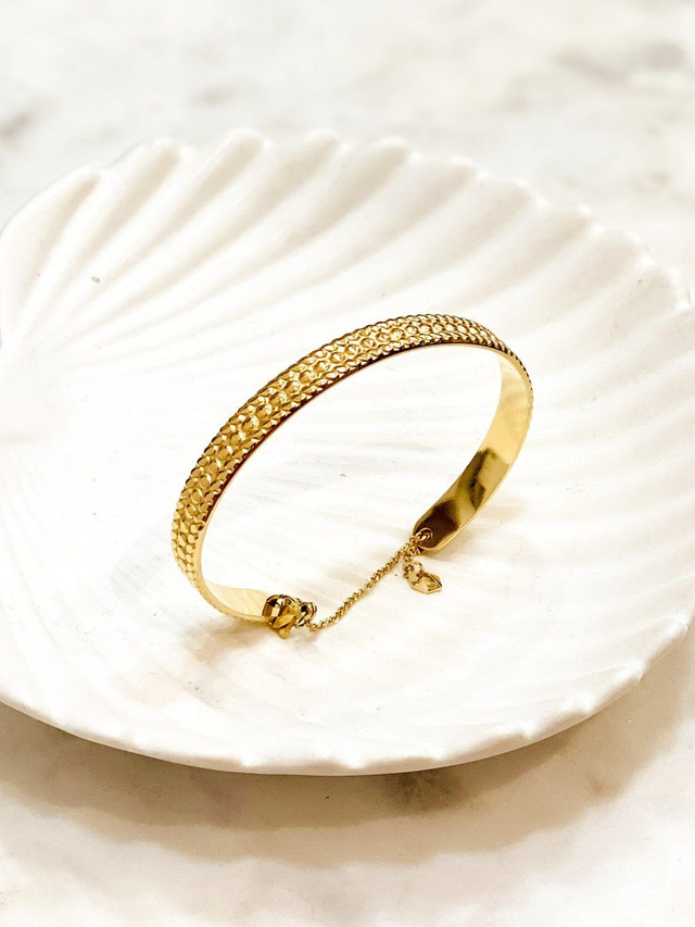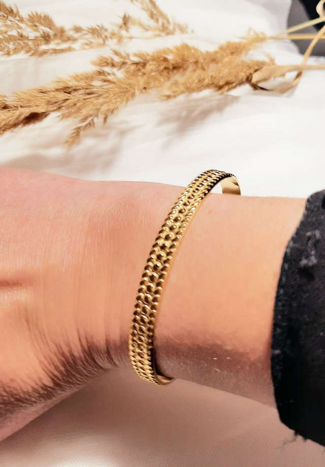 Ce Jonc effet 3 rangs doré à l'Or Fin apporte une touche d'élégance à toutes vos tenues, mettant en valeur votre féminité et votre chic avec son éclat sophistiqué.