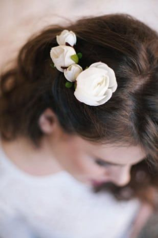 Accessoire signature de la collection Naomi, le peigne du même nom incarne la délicatesse à l’état pur. Orné de fleurs ivoire aux accents résolument rétro, il vient illuminer la coiffure de la mariée avec une grâce infinie. Glissé dans un chignon, une torsade ou une demi-attache, le peigne Naomi apporte cette touche de poésie qui fait toute la différence. L’allié idéal d’une robe en dentelle pour une allure romantique, douce et intemporelle.