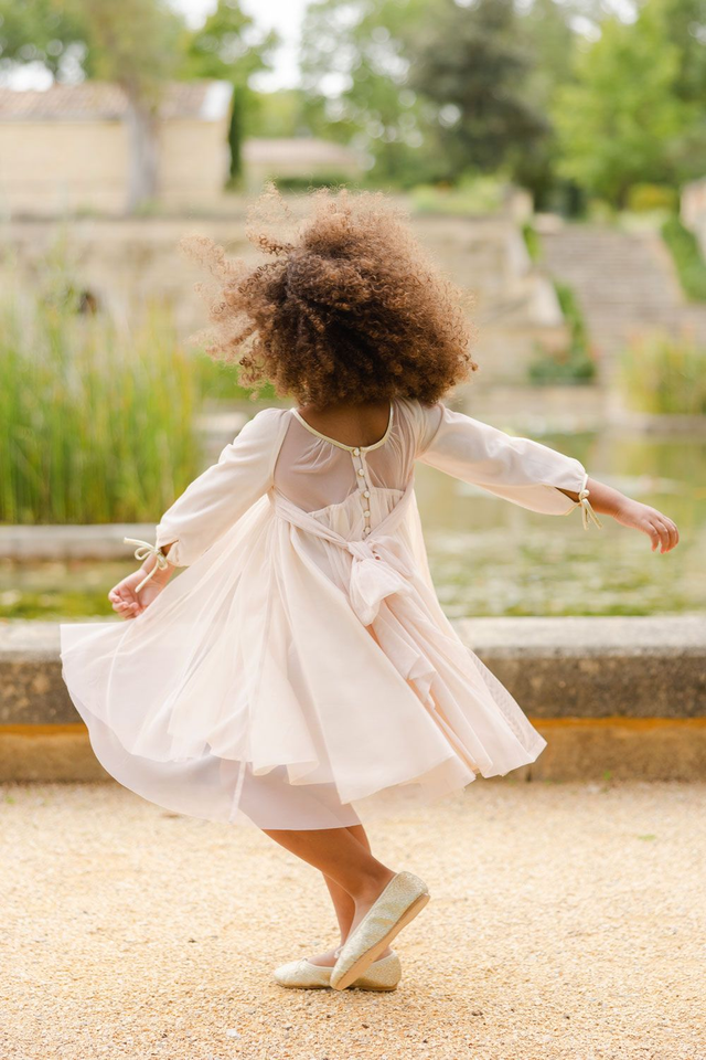 La robe Léna Rose poudré signée Les Petits Inclassables incarne tout le raffinement et la poésie des grandes cérémonies. Conçue pour faire rêver les petites filles, elle allie la délicatesse du tulle à la douceur du coton, pour un confort parfait et une allure de princesse intemporelle.