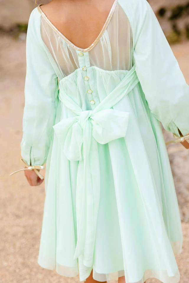 Robe cérémonie en Tulle Vert Aqua | Lena
