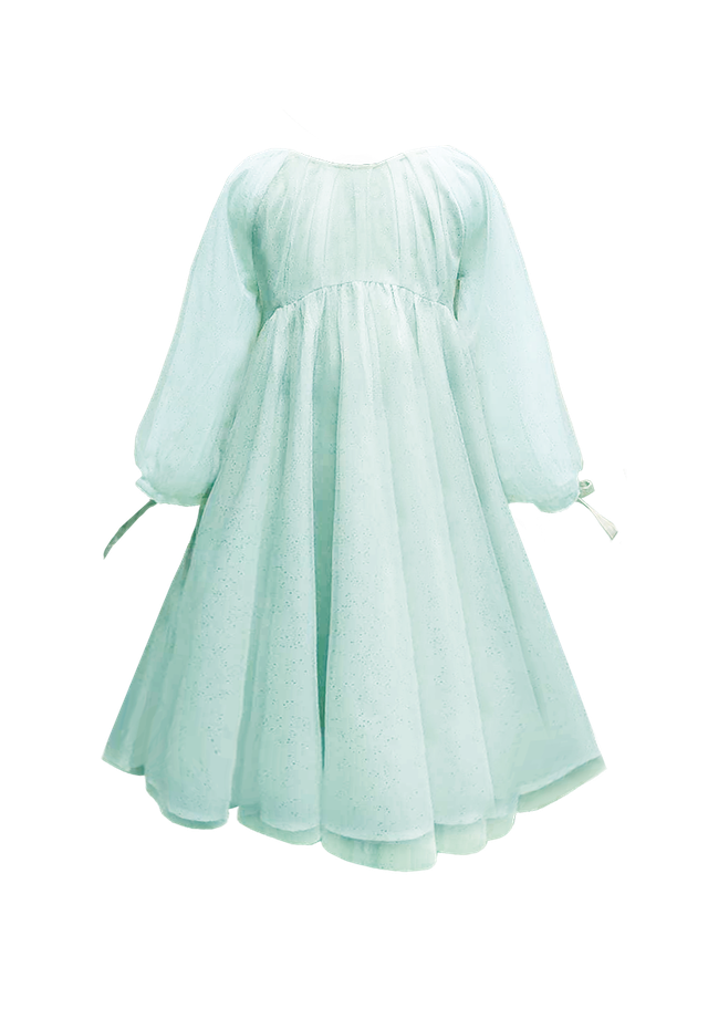 Réalisée dans un tulle aérien en polyester et une doublure de coton popeline, la robe Léna se distingue par son coloris Vert Aqua et ses finitions délicates. Fabriquée avec soin en Inde.