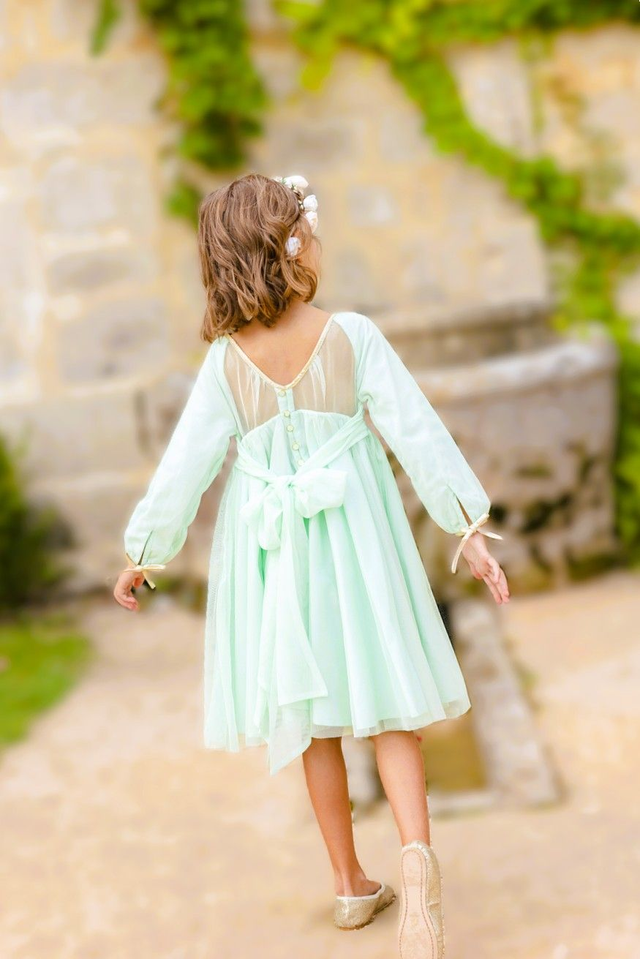 La robe Léna Vert Aqua signée Les Petits Inclassables incarne tout le raffinement et la poésie des grandes cérémonies. Conçue pour faire rêver les petites filles, elle allie la délicatesse du tulle à la douceur du coton, pour un confort parfait et une allure de princesse intemporelle.