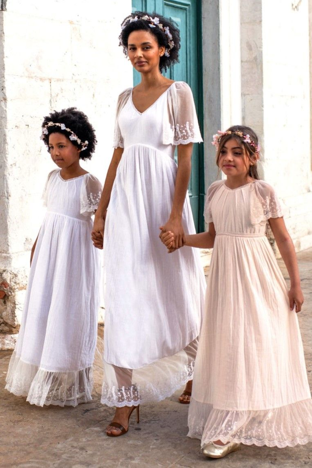 Disponible du 34 au 44, Salomé sublime toutes les silhouettes et se décline aussi en version enfant pour un duo mère-fille plein de tendresse. Idéale pour le grand jour ou le brunch du lendemain, elle s’accorde à merveille avec les accessoires fleuris English Garden® pour un look inoubliable.