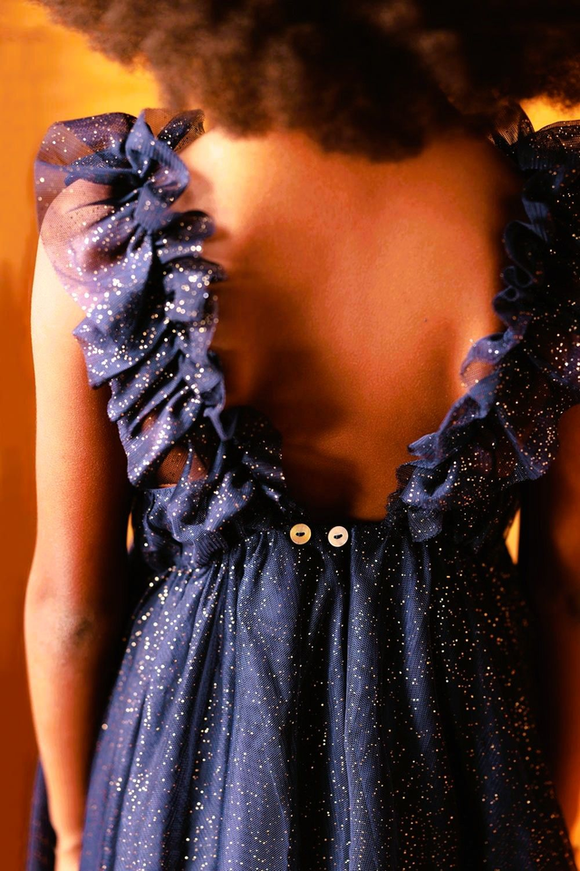 Idéale pour danser et explorer tout au long de la journée, elle permet à chaque enfant de vivre pleinement ses rêves de féérie. Réalisée en tulle polyester et une d'une doublure en Popeline de coton, elle offre confort, légèreté et élégance à chaque mouvement. Fabriquée avec soin en Inde. Coloris : Bleu nuit Crédit photo : Les Petits Inclassables.