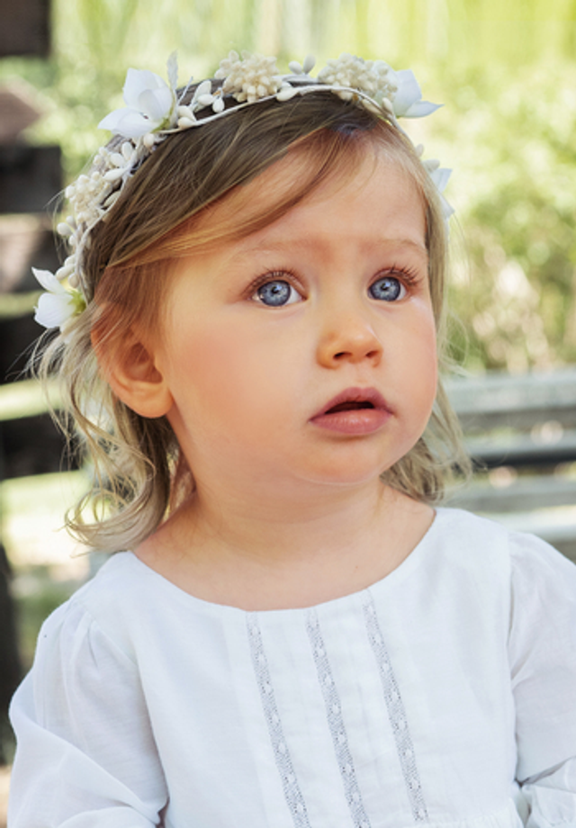 Ses fleurs ivoire lui permettent de sublimer n’importe quelle tenue : robe Thelma, ensemble blanc ou teinte pastel… tout lui va. Légère, romantique et discrète, elle apporte ce petit supplément d’âme qui transforme une silhouette : parfaite pour les demoiselles d’honneur, mais aussi pour les jeunes mariées en quête d’un accessoire boho tout en douceur.