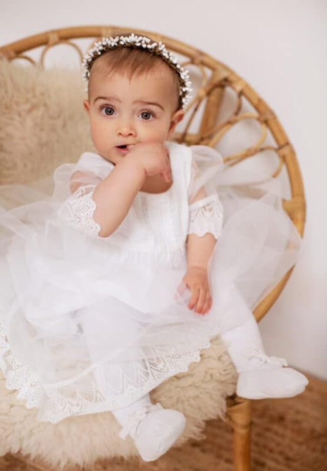 Disponible en pêche, rose poudré et ivoire. Existe également pour les bébés !