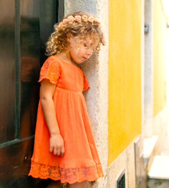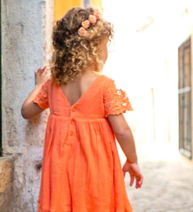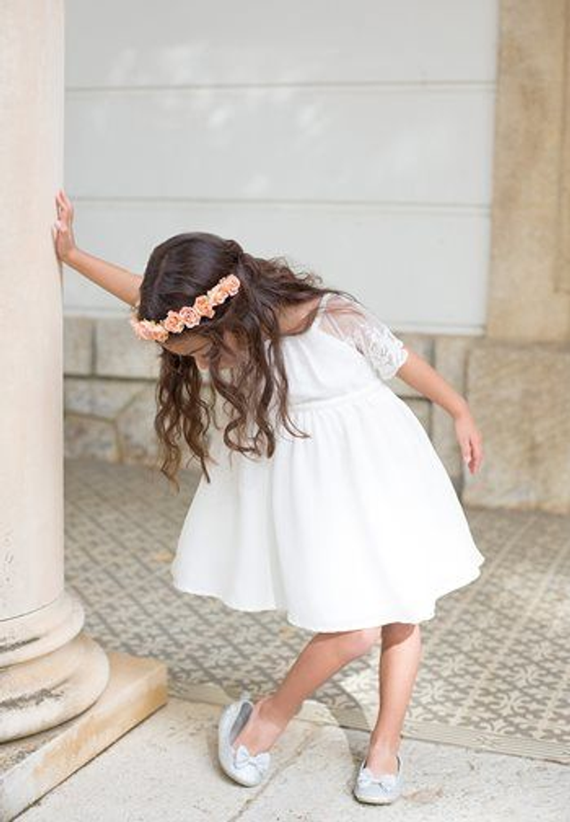 Évoquant la douceur des époques anciennes et l’innocence des jours de fête, la couronne Rosie se pose telle une caresse dans les cheveux des petites filles.